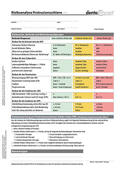 Nach Eingliederung einer Unterkieferprotrusionsschiene (UPS) empfiehlt die zahnärztliche Leitlinie eine Patienteneinweisung in Übungen zur Lockerung der Kaumuskulatur und zur Wiedererlangung der ursprünglichen Kieferposition vor, um Nebenwirkungen zu vermeiden. Der Instruktionsbogen Protrusionsschiene (UPS) enthält eine leicht verständliche illustrierte Anleitung zu diesen Übungen in optimierter Reihenfolge sowie die Option, den Pateinten an das Einsetzen der „Guten-Morgen-Schiene“ zu erinnern und auf nötige Kontrolltermine hinzuweisen. Damit sichern Sie eine leitliniengerechte und praxisnahe Umsetzung.